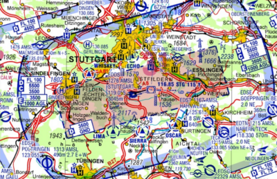 Zusätzlich darf Ihre Rakete nicht in den kontrollierten Luftraum eindringen. Dieser kontrollierte Luftraum ist im Prinzip der Bereich, in dem die Flugsicherung (der „Tower“) die Organisation des Flugbewegungen übernimmt. Im ganz überwiegende Teil des Landes beginnt dieser Flugraum bei deutlich über 1000 m. In der Nähe von Flugplätzen und Militäranlagen kann der kontrollierte Luftraum aber auch bis zum Boden reichen. Auf Anfrage schicke ich Ihnen gerne eine Karte des Luftraums in ihrer Umgebung zu, auf dem Sie sehen können ob es in ihrer Nähe einen Bereich gibt, in dem der kontrollierte Luftraum bis zu Boden reicht (siehe Abbildung rechts).